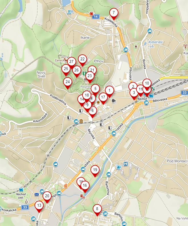 22. Zámek (Smiřických č.p. 272) Galerie výtvarného umění - monitoruje příjezdovou komunikaci ul. Smiřických, nově upravený park u galerie, chodníky směrem k nádvoří u medvědů