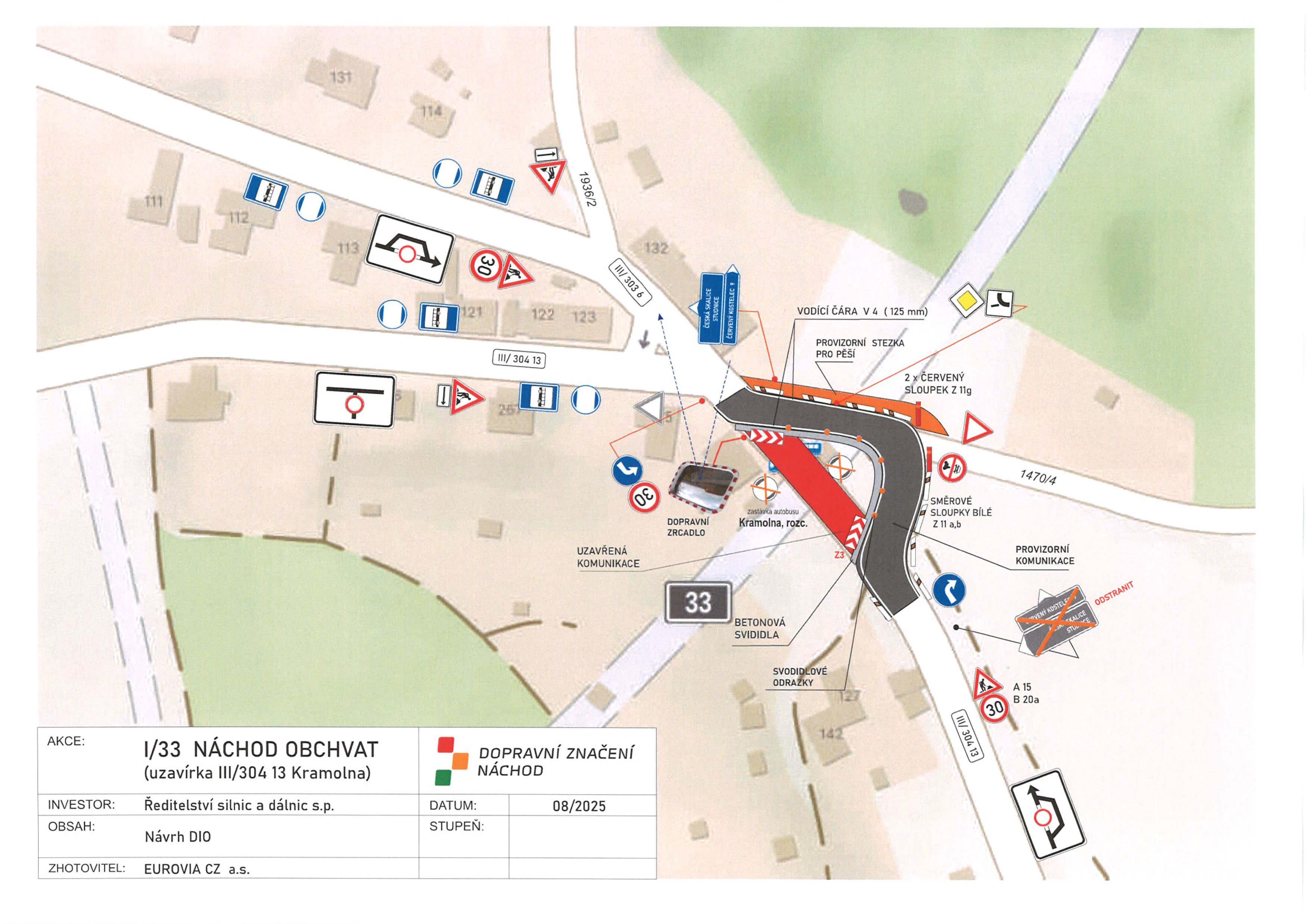 Z důvodu pokračující výstavby obchvatu Náchoda dojde od čtvrtka 9. října 2025 k uzavírce silnice III/30413 v úseku od křižovatky se silnicí III/3036 v délce přibližně 100 metrů ve směru do Náchoda.