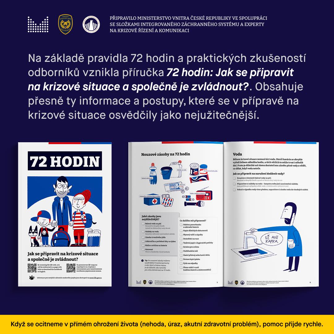 Někdy i malá příprava může zachránit život. Pro tyto účely vznikl praktický manuál „72 hodin", který radí, jak se postarat o sebe a své blízké během prvních tří kritických dnů krize, než dorazí organizovaná pomoc.