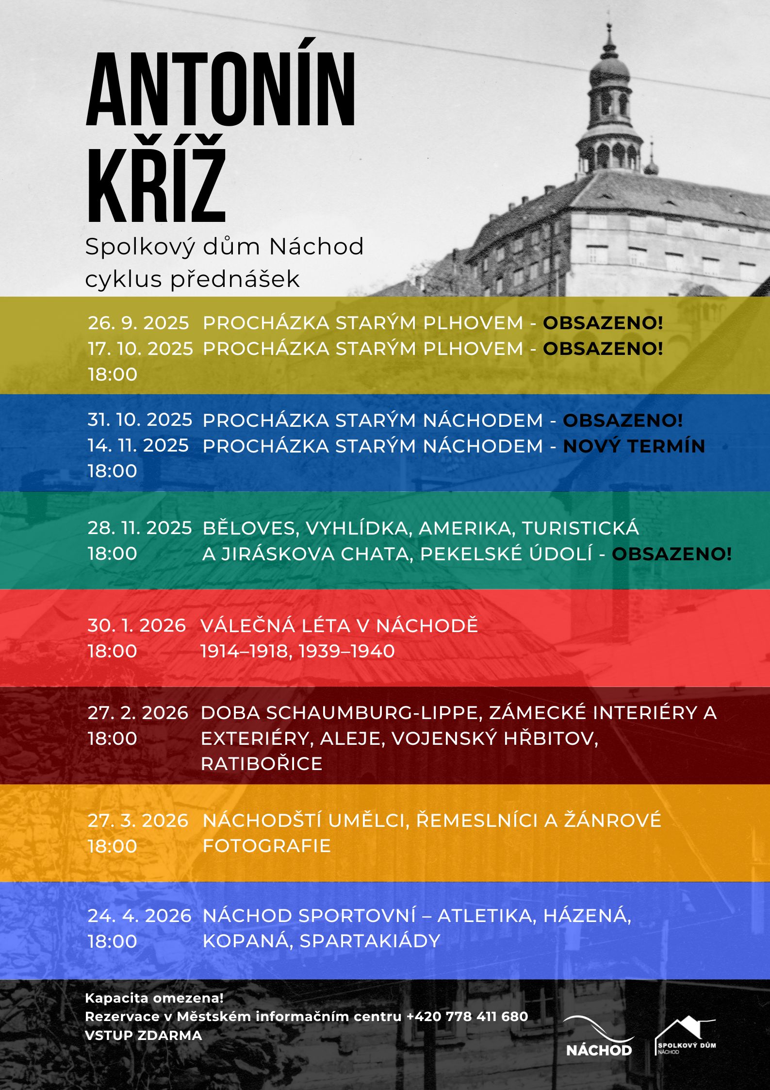 Zveme Vás na sérii poutavých besed a procházek historií Náchoda a okolí v podání Antonína Kříže, které budou probíhat od 18:00 ve Spolkovém domě Náchod.