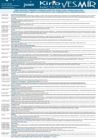 tel.: 491 428 498 e-mail: info@kinonachod.czwww.kinonachod.czDUBENZM%u011aNA PROGRAMU VYHRAZENA!!! Vzhledem k uz%u00e1v%u011brce NZ, sledujte, pros%u00edm, aktu%u00e1ln%u00ed program kina. Aktualizovan%u00fd program najdete na www.kinonachod.cz nebo na plak%u00e1tech kina na v%u00fdlepov%u00fdch ploch%u00e1ch.JAK SE N%u00c1M TO MOHLO ST%u00c1T!?Hrd%u00fd %u010cech a py%u0161n%u00fd moravsk%u00fd %u0161lechtic aneb Sv%u00e9 p%u0159edky si nevyb%u00edr%u00e1me%u2026 Komedie o st%u0159etu dvou naprosto odli%u0161n%u00fdch rodin. Po p%u011btadvaceti letech od legend%u00e1rn%u00edch Pel%u00ed%u0161k%u016f kone%u010dn%u011b znovu v kinech rozehraj%u00ed Miroslav Donutil a Bolek Pol%u00edvka po%u0159%u00e1dnou komedii. V dal%u0161%u00edch rol%u00edch Jitka %u010cvan%u010darov%u00e1, Eva Leinweberov%u00e1, Simona Lewandovsk%u00e1 a Filip %u010cervenka. Re%u017eie Petr Zahr%u00e1dka. Vstupn%u00e9 160K%u010d, p%u0159%u00edstupn%u00e9 bez omezen%u00edNA PLECH Rodinn%u00fd film Martyho Pohla. O netradi%u010dn%u00ed skupin%u011b, kter%u00e1 spoj%u00ed progresivn%u00ed ekonomick%u00e9 postupy se znalost%u00ed ulice a posunou rodinn%u00e9 podnik%u00e1n%u00ed na zcela novou %u00farove%u0148%u2026Vstupn%u00e9 150K%u010d, nevhodn%u00e9 pro nezletil%u00e9 osoby do 15 letV DOBR%u00c9M I ZL%u00c9MTahle n%u00e1v%u0161t%u011bva se trochu zvrtne%u2026 L%u00e1ska, radost, vzru%u0161en%u00ed, v%u00e1%u0161e%u0148, sex. Ji%u0159%u00ed Langmajer, Petra H%u0159eb%u00ed%u010dkov%u00e1, Martin Hofmann a T%u00e1%u0148a Pauhofov%u00e1 v hlavn%u00edch rol%u00edch komedie re%u017eis%u00e9rky Marty Ferencov%u00e9.Vstupn%u00e9 150K%u010d, nevhodn%u00e9 pro nezletil%u00e9 osoby do 15 letMINECRAFT FILMJak ten sv%u011bt zachr%u00e1nit? Kl%u00ed%u010dem je kreativita. P%u0159ipravte se na nejv%u011bt%u0161%u00ed dobrodru%u017estv%u00ed, kter%u00e9 kdy kdo postavil%u2026 V%u00edtejte ve sv%u011bt%u011b Minecraft, kde je va%u0161e schopnost tvo%u0159it a vyr%u00e1b%u011bt kl%u00ed%u010dem k p%u0159e%u017eit%u00ed! Fantastick%u00fd ak%u010dn%u00ed dobrodru%u017en%u00fd rodinn%u00fd film, uv%u00e1d%u011bn%u00fd v %u010desk%u00e9m zn%u011bn%u00ed. Vstupn%u00e9 150K%u010d, p%u0159%u00edstupn%u00e9 bez omezen%u00edV PASTIM%u011bla to b%u00fdt rychl%u00e1 %u010d%u00f3rka. Nic, co by pouli%u010dn%u00ed zlod%u011bj%u00ed%u010dek Eddie ned%u011blal u%u017e mockr%u00e1t. Jen%u017ee zd%u00e1n%u00ed n%u011bkdy klame%u2026 A samozvan%u00fd mstitel William (Anthony Hopkins) toti%u017e za%u010d%u00edn%u00e1 rozehr%u00e1vat zvr%u00e1cenou hru, jej%u00ed%u017e pra,vidla zn%u00e1 jen on. A n%u00e1ramn%u011b se p%u0159itom bav%u00ed... Nervy dr%u00e1saj%u00edc%u00ed p%u0159%u00edb%u011bh o p%u0159e%u017eit%u00ed, spravedlnosti a temn%u00fdch str%u00e1nk%u00e1ch lidsk%u00e9 mysli, nato%u010dil %u010desk%u00fd producent Petr J%u00e1kl ve spolupr%u00e1ci s Arou Keshishianem a proslul%u00fdm Samem Raimim. %u010cesk%u00e9 titulky. Vstupn%u00e9 150K%u010d, nevhodn%u00e9 pro nezletil%u00e9 osoby do 15 letOPERACE BLACK BAGNa chycen%u00ed %u0161pi%u00f3na pot%u0159ebujete %u0161pi%u00f3na! Man%u017eel%u00e9 p%u0159ed sebou m%u00edvaj%u00ed r%u016fzn%u00e1 tajemstv%u00ed. A co teprve, kdy%u017e jsou ti man%u017eel%u00e9 %u0161pi%u00f3ni, z nich%u017e jeden mo%u017en%u00e1 pr%u00e1v%u011b zrazuje svou zemi%u2026 Cate Blanchett a Michael Fassbender exceluj%u00ed v thrilleru oscarov%u00e9ho re%u017eis%u00e9ra Stevena Soderbergha. %u010cesk%u00e9 titulky. Vstupn%u00e9 150K%u010d, nevhodn%u00e9 pro nezletil%u00e9 osoby do 12 letODV%u00c1%u017dN%u00c1 VAIANA 2Dal%u0161%u00ed osudy odv%u00e1%u017en%u00e9 d%u00edvky Vaiany. Dobrodru%u017estv%u00ed pln%u00e9 n%u00e1strah, uv%u00e1d%u00edme v %u010desk%u00e9m zn%u011bn%u00ed. Vstupn%u00e9 150K%u010d, d%u011bti do 15 let 130K%u010d, p%u0159%u00edstupn%u00e9 bez omezen%u00edMO%u0158E NA DVO%u0158EOnd%u0159ej Vetch%u00fd a Ji%u0159%u00ed Langmajer v rol%u00edch, v jak%u00fdch jste je je%u0161t%u011b nevid%u011bli, ve filmu, kter%u00fd v%u00e1s dob%u0159e nalad%u00ed! Tv%u016frci komedie %u017deny v b%u011bhu p%u0159ich%u00e1zej%u00ed s nov%u00fdm filmem o nad%u011bji, a hlavn%u011b o l%u00e1sce.Vstupn%u00e9 160K%u010d, p%u0159%u00edstupn%u00e9 bez omezen%u00edBOB A BOBEK VE FILMU: NA STOP%u011a MRKVOJEDAZn%u00e1m%u00e1 kr%u00e1li%u010d%u00ed dvojice Bob a Bobek ve filmu! Kr%u00e1l%u00edci z kouzelnick%u00e9ho klobouku tak op%u011bt dostanou prostor k tomu, aby vykouzlili %u00fasm%u011bvy na tv%u00e1%u0159%u00edch div%u00e1k%u016f nap%u0159%u00ed%u010d v%u0161emi generacemi.Vstupn%u00e9 140K%u010d, d%u011bti 120K%u010d, p%u0159%u00edstupn%u00e9 bez omezen%u00edLABUT%u00cd JEZERO Z%u00c1ZNAM BALETN%u00cdHO P%u0158EDSTAVEN%u00cd Z ROYAL BALETU A OPERY V LOND%u00ddN%u011aHudba: Petr Ilji%u010d %u010cajkovskij, choreografie: Marius Petipa, Lev Ivanov, dodate%u010dn%u00e1 choreografie: Liam Scarlett, Frederick Ashton. Princ Siegfried na lovu naraz%u00ed na hejno labut%u00ed, z nich%u017e jedna se prom%u011bn%u00ed v kr%u00e1snou d%u00edvku. Zl%u00e1 kletba ji umo%u017e%u0148uje z%u00edskat svou podobu pouze v noci a vysvobodit ji m%u016f%u017ee jen prav%u00e1 l%u00e1ska%u2026 Vstupn%u00e9 270K%u010d, p%u0159%u00edstupn%u00e9 bez omezen%u00edTICH%u00c1 PO%u0160TASkute%u010dn%u00fd p%u0159%u00edb%u011bh o odvaze mal%u00fdch i velk%u00fdch hrdin%u016f%u2026 Dobrodru%u017en%u00fd rodinn%u00fd film se odehr%u00e1v%u00e1 v zim%u011b v zasn%u011b%u017een%u00fdch Krkono%u0161%u00edch na sklonku n%u011bmeck%u00e9 okupace v roce 1945. Hraj%u00ed Judit Pech%u00e1%u010dek, Mat%u011bj H%u00e1dek, Karel Dobr%u00fd, Antonie Formanov%u00e1, Roman Pol%u00e1%u010dik, Daniel Fischer, Petr Forman, Denis %u0160afa%u0159%u00edk, d%u011bti a%u2026 spousta sn%u011bhu. Re%u017eie J%u00e1n Sebechlebsk%u00fd. Vstupn%u00e9 150K%u010d, p%u0159%u00edstupn%u00e9 bez omezen%u00edBECOMING LED ZEPPELIN UNIK%u00c1TN%u00cd HUDEBN%u00cd DOKUMENTNa va%u0161e %u010detn%u00e1 p%u0159%u00e1n%u00ed opakujeme! Prvn%u00ed autorizovan%u00fd hudebn%u00ed dokument%u00e1rn%