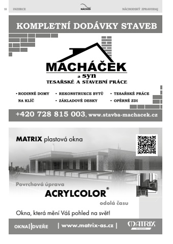 18 INZERCE N%u00c1CHODSK%u00dd ZPRAVODAJOKNA DVE%u0158E | www.matrix-as.cz |MATRIX plastov%u00e1 oknaACRYLCOLOR%u00aeOkna, kter%u00e1 m%u011bn%u00ed V%u00e1%u0161 pohled na sv%u011bt!Povrchov%u00e1 %u00fapravaodol%u00e1 %u010dasu