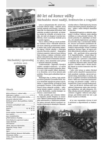 %u00daVODN%u00cdK 1ObsahN%u00e1chodsk%u00fd zpravodajKV%u011aTEN 2025Letos si p%u0159ipom%u00edn%u00e1me 80. v%u00fdro%u010d%u00ed konce druh%u00e9 sv%u011btov%u00e9 v%u00e1lky %u2013 ud%u00e1losti, kter%u00e1 nav%u017edy zm%u011bnila tv%u00e1%u0159 Evropy i osudy milion%u016f lid%u00ed. Pro N%u00e1chodsko byl kv%u011bten 1945 obdob%u00edm prudk%u00fdch p%u0159echod%u016f, od lidsk%u00e9ho %u00fatlaku ke svobod%u011b, od strachu k nad%u011bji, ale tak%u00e9 od okupace k nov%u00fdm konflikt%u016fm, kter%u00e9 zanechaly hlubok%u00e9 jizvy v pam%u011bti regionu. Dne 5. kv%u011btna 1945 po v%u00fdzv%u011b pra%u017esk%u00e9ho rozhlasu za%u010dal v N%u00e1chod%u011b nen%u00e1vratn%u011b mizet n%u011bmeck%u00fd protektor%u00e1tn%u00ed re%u017eim. Z budov byly rychle odstran%u011bny n%u011bmeck%u00e9 n%u00e1pisy, v%u010detn%u011b tabulky s v%u00e1le%u010dn%u00fdm n%u00e1zvem hlavn%u00edho n%u00e1m%u011bst%u00ed %u2013 Siegesplatz (V%u00edt%u011bzn%u00e9 n%u00e1m%u011bst%u00ed). S%u00e1drov%u00e1 busta Hitlera byla svr%u017eena z radnice a %u00fa%u0159edn%u00edci za%u010dali jednat v%u00fdhradn%u011b %u010desky. Ve%u010der m%u00edstn%u00ed rozhlas ozn%u00e1mil vznik revolu%u010dn%u00edho n%u00e1rodn%u00edho v%u00fdboru, kter%u00fd okam%u017eit%u011b za%u010dal jednat o odchodu n%u011bmeck%u00e9 pos%u00e1dky. Z dobrovoln%u00edk%u016f %u2013 legion%u00e1%u0159%u016f, b%u00fdval%u00fdch voj%u00e1k%u016f i mlad%u00fdch vlastenc%u016f %u2013 se za%u010dala formovat %u010desk%u00e1 revolu%u010dn%u00ed jednotka. Mnoz%u00ed z nich v%u0161ak nem%u011bli %u017e%u00e1dn%u00e9 zku%u0161enosti se zbran%u011bmi, co%u017e se brzy uk%u00e1zalo jako probl%u00e9m. P%u0159esto jejich odhodl%u00e1n%u00ed bylo nezlomn%u00e9. N%u00e1sleduj%u00edc%u00ed den, 6. kv%u011btna, byla zalo%u017eena m%u00edstn%u00ed pobo%u010dka %u010cerven%u00e9ho k%u0159%u00ed%u017ee, kter%u00e1 se okam%u017eit%u011b zapojila do pomoci uprchl%u00edk%u016fm a repatriant%u016fm prchaj%u00edc%u00edm p%u0159ed postupuj%u00edc%u00ed frontou. O den pozd%u011bji za%u010dal hlavn%u00ed %u00fastup n%u011bmeck%u00e9 arm%u00e1dy %u2013 nekone%u010dn%u00e9 kolony voj%u00e1k%u016f i civilist%u016f se tla%u010dily p%u0159es N%u00e1chodsko, zoufale hledaj%u00edc%u00ed z%u00e1chranu u americk%u00fdch lini%u00ed. %u010cesk%u00e1 pos%u00e1dka pod velen%u00edm %u0161t%u00e1bn%u00edho kapit%u00e1na Josefa P%u016flp%u00e1na na hranic%u00edch v B%u011blovsi odzbrojovala n%u011bmeck%u00e9 voj%u00e1ky wehrmachtu a zaji%u0161%u0165ovala po%u0159%u00e1dek. Do m%u011bsta z%u00e1rove%u0148 dorazil transport vyhubl%u00fdch %u017eidovsk%u00fdch v%u011bzenky%u0148 z koncent80 let od konce v%u00e1lky N%u00e1chodsko mezi nad%u011bj%u00ed, hrdinstv%u00edm a trag%u00e9di%u00edra%u010dn%u00edho t%u00e1bora v %u017dak%u0161i (Sackisch), kter%u00fdm m%u00edstn%u00ed obyvatel%u00e9 poskytli okam%u017eitou pomoc %u2013 jeden z m%u00e1la sv%u011btl%u00fdch okam%u017eik%u016f t%u011bchto dn%u00ed. Nejtemn%u011bj%u0161%u00ed kapitola se odehr%u00e1la odpoledne 9. kv%u011btna v B%u011blovsi, jej%u00edm n%u011bm%u00fdm sv%u011bdkem se stala p%u016fvodn%u00ed celnice. N%u011bmeck%u00e9 jednotky SS, p%u0159ij%u00ed%u017ed%u011bj%u00edc%u00ed od Kladska, zde odm%u00edtly kapitulovat a pustily se do krvav%u00e9ho boje s revolu%u010dn%u00edmi hl%u00eddkami. Situace vyvrcholila zast%u0159elen%u00edm n%u011bkolika des%u00edtek rudoarm%u011bjc%u016f a jeden%u00e1cti %u010desk%u00fdch dobrovoln%u00edk%u016f v%u010detn%u011b studenta gymn%u00e1zia V%u00e1clava %u010cejpa. A%u017e teprve p%u0159%u00edjezd d%u011blost%u0159eleck%u00e9 jednotky sov%u011btsk%u00e9 arm%u00e1dy %u2013 291. gat%u010dinsk%u00e9 divize gener%u00e1la V. K. Zajon%u010dkovsk%u00e9ho %u2013 zlomil odpor %u0159%u00e1d%u00edc%u00edch jednotek SS. N%u00e1sledovala nem%u00e9n%u011b tragick%u00e1 noc v pivovaru a dopoledne v z%u00e1meck%u00e9 aleji. Tzv. B%u011blovesk%u00e1 trag%u00e9die si vy%u017e%u00e1dala zbyte%u010dn%u00e9 ob%u011bti, kter%u00fdch bylo nejv%u00edce v %u0161irok%u00e9m okol%u00ed v t%u011bchto dnech. Jej%u00ed dopad na m%u00edstn%u00ed komunitu byl hlubok%u00fd a trval%u00fd. I p%u0159es tyto hr%u016fzy se m%u011bsto N%u00e1chod a okol%u00ed za%u010dalo okam%u017eit%u011b vzpamatov%u00e1vat. Lid%u00e9 pom%u00e1hali ran%u011bn%u00fdm, opravovali poni%u010den%u00e9 domy, komunikace a mosty, sna%u017eili se co nejd%u0159%u00edve navr%u00e1tit k norm%u00e1ln%u00edmu %u017eivotu. V%u00e1lka sice zanechala nesmazateln%u00e9 stopy, ale p%u0159inesla i nad%u011bji %u2013 tolik vytou%u017een%u00fd m%u00edr a %u0161anci na lep%u0161%u00ed budoucnost. Dnes, po 80 letech, bychom m%u011bli tyto ud%u00e1losti p%u0159ipom%u00ednat nejen jako historickou zaj%u00edmavost, ale jako memento. P%u0159%u00edb%u011bhy odvahy m%u00edstn%u00edch odboj%u00e1%u0159%u016f, utrpen%u00ed civilist%u016f i trag%u00e9die v B%u011blovsi n%u00e1m p%u0159ipom%u00ednaj%u00ed, jak k%u0159ehk%u00fd m%u016f%u017ee b%u00fdt m%u00edr a jak draze se plat%u00ed za svobodu. A%u0165 je tato vzpom%u00ednka v%u00fdzvou k %u00fact%u011b k minulosti a odpov%u011bdnosti za budoucnost.80 let od konce 2. sv%u011btov%u00e9 v%u00e1lky ..................1Informace z radnice.............................2%u20133, 4Kronika, CIOZP, Pe%u010dovatelsk%u00e1 slu%u017eba..........4Den proti rakovin%u011b, MAS .............................5Kv%u011btnov%u00e1 v%u00fdro%u010d%u00ed, Nov%u00e1 publikace, Rodina Honlov%u00fdch .....................................................6Z historie n%u00e1chodsk%u00fdch rod%u016f.......................7Pozv%u00e1nky................................................. 9, 19Inzerce....................................... 10, 18, 20, 22%u0160koly....................................................... 11%u201315Prima sez%u00f3na, Camerata Nova, Den s polici%u00ed...........................................15%u201317Jazz v protektor%u00e1tu: p%u0159%u00edb%u011bh doktora Chudoby............................2130 let Kulturn%u00ed a sportovn%u00ed