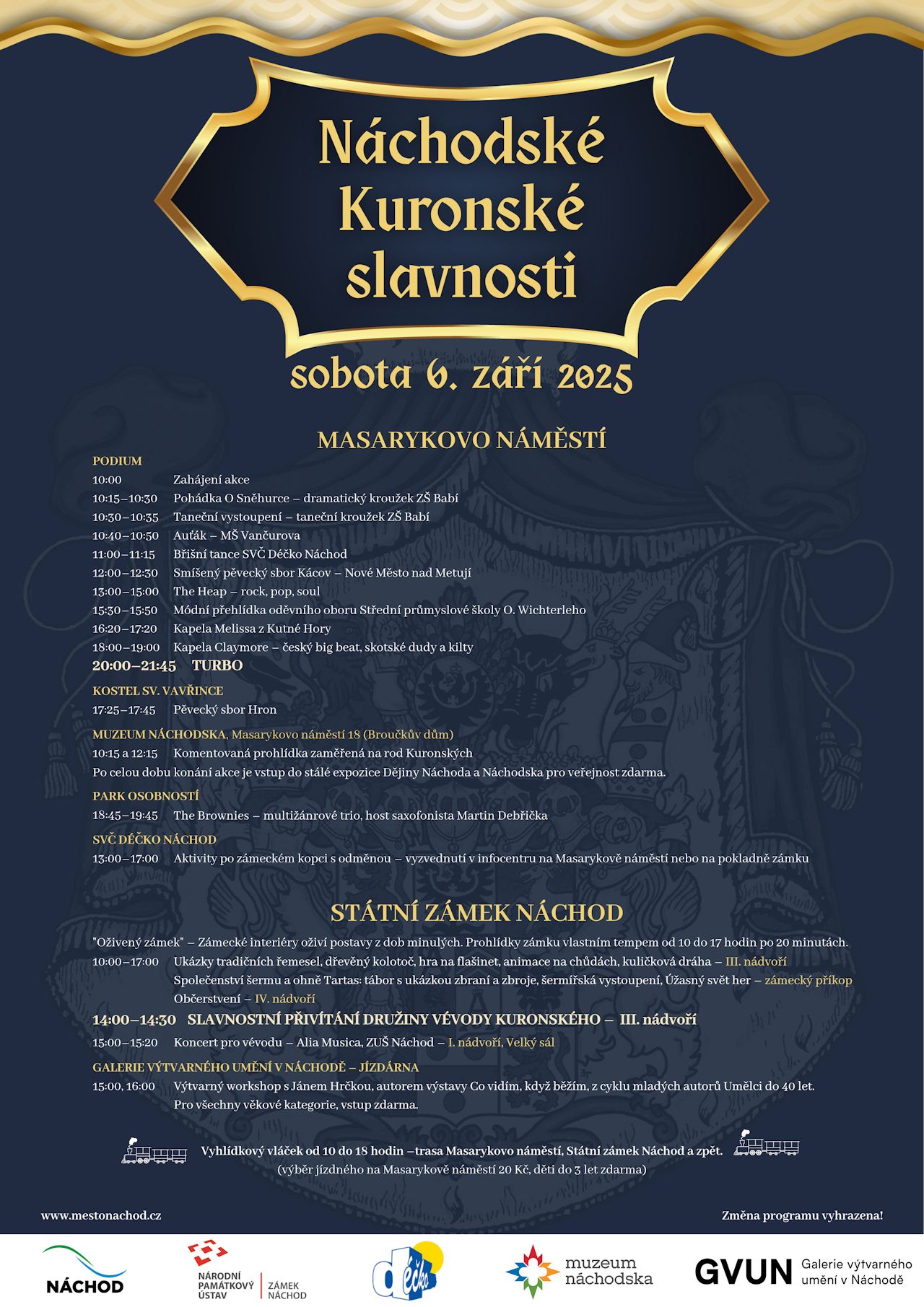 19. ročník Kuronských slavností se uskuteční 6. září 2025 na Masarykově náměstí a Státním zámku v Náchodě.